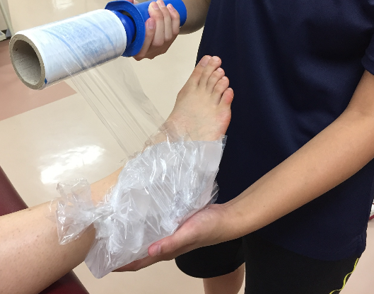 2. 氷のうの中の空気を抜く(患部に密着させるため)