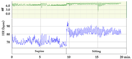 4. 座る(スポーツ選手の場合は立つ)姿勢で5分間の測定
