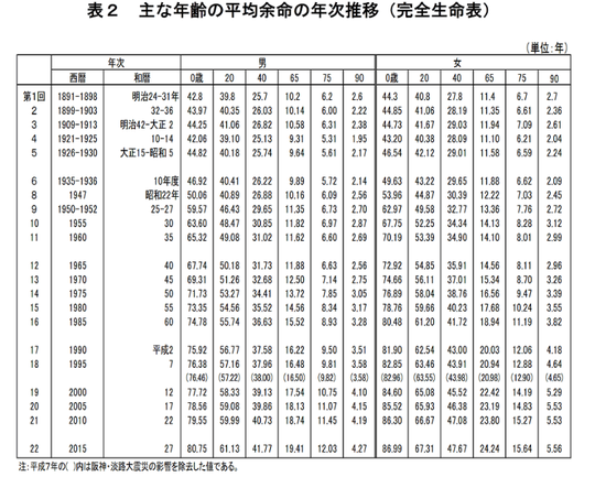 日本人の寿命について、織田信長のいた時代は「人生50年」と言われます。平成27年の日本人の「平均寿命」は男性が80.79歳、女性が87.05歳で、ともに過去最高を更新しました。