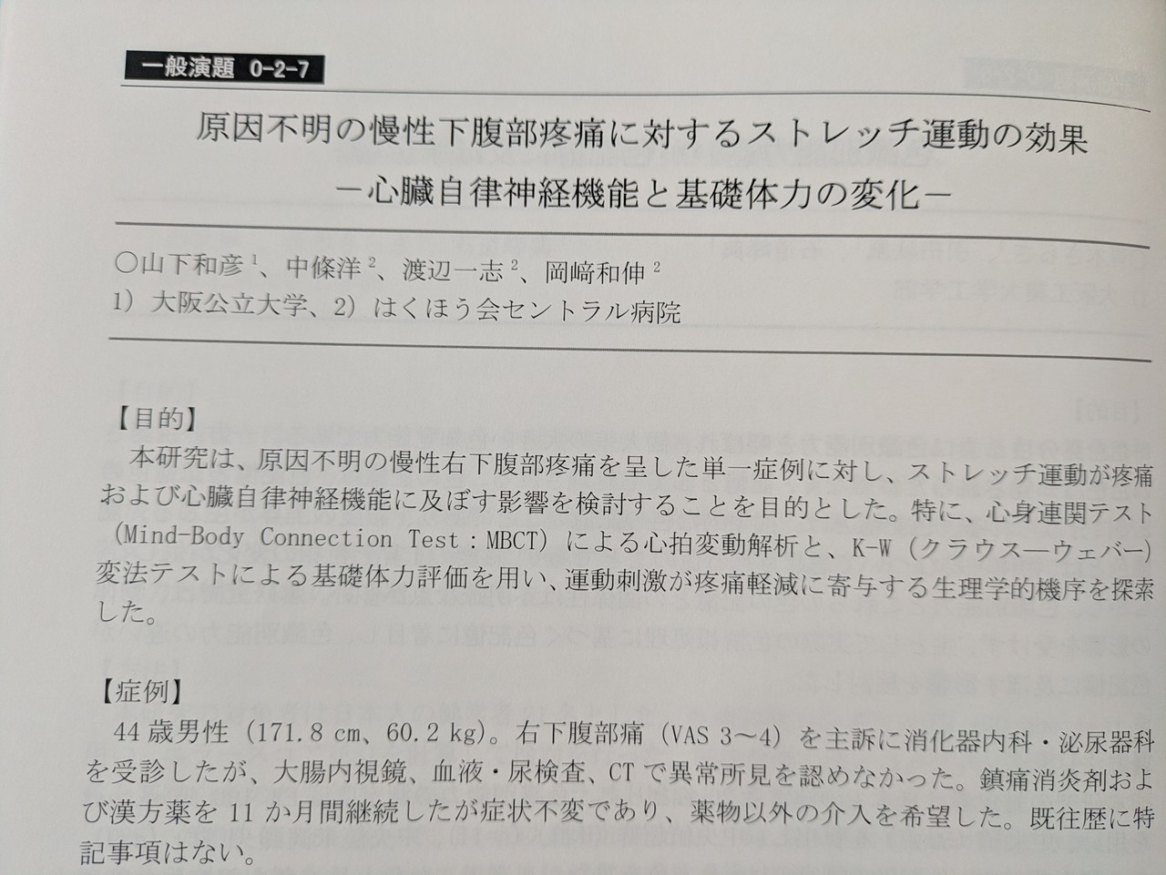 「11か月の慢性疼痛が初回で消失」した症例を2月28日神戸大学開催の体力医学会近畿大会で発表予定です。以下に抄録を掲載いたします。