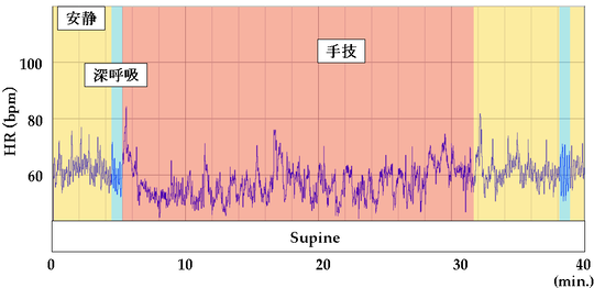 手技による心拍数推移が平均56.6拍/分と自律神経機能は安定して