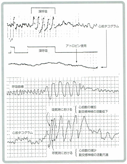 逆に、呼吸性洞性不整脈が生じない場合は副交感神経機能の働きが悪いということです。