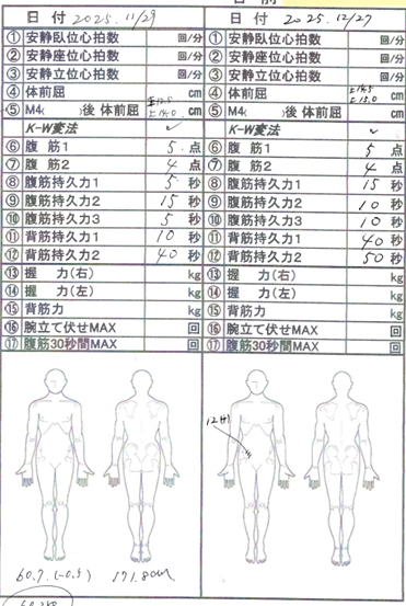 一か月後には自宅のトレーニングによりテスト結果もやや向上
